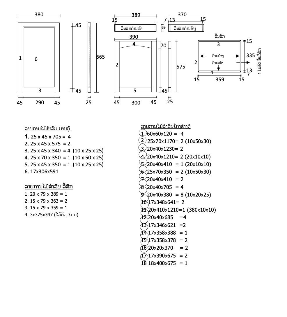 🔳ລາຍການໄມ້ສໍາລັບໂຄງຮ່າງຕູ້