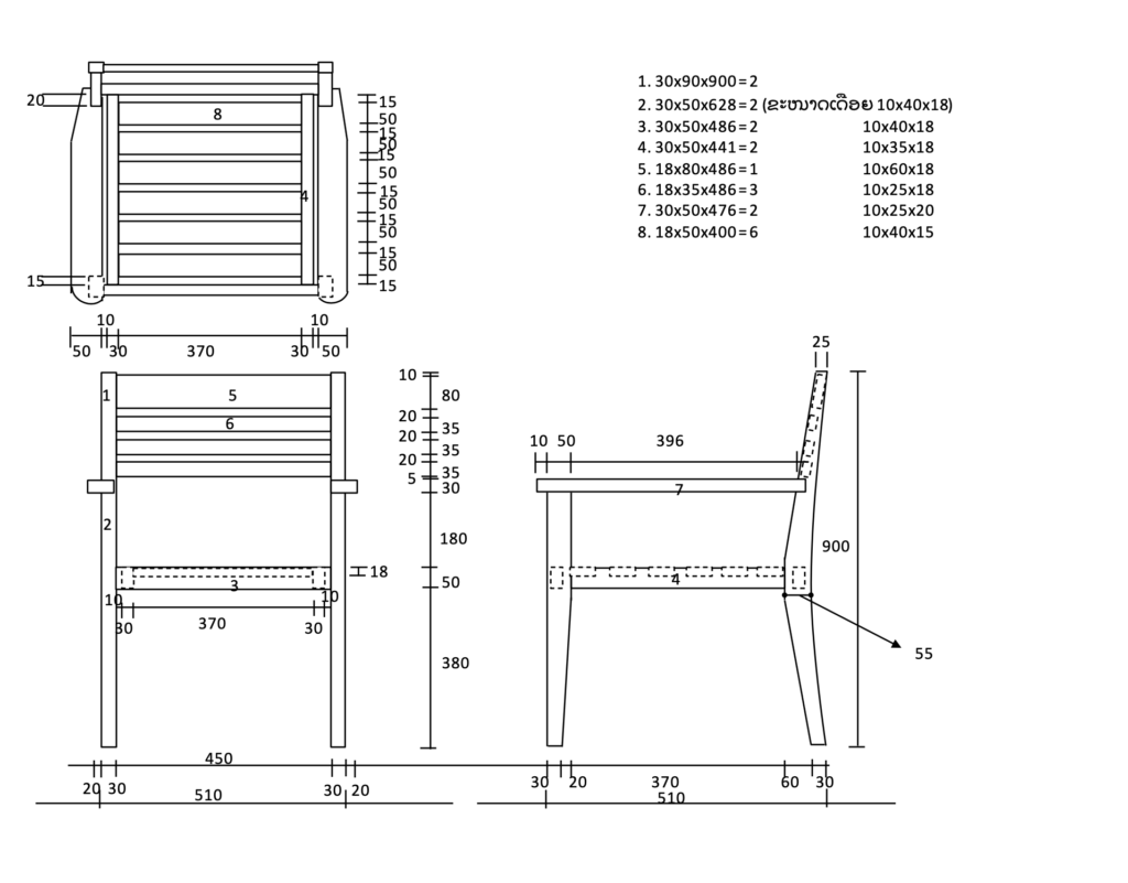 – ລາຍການໄມ້ ແຕ່ລະສີ້ນສ່ວນ